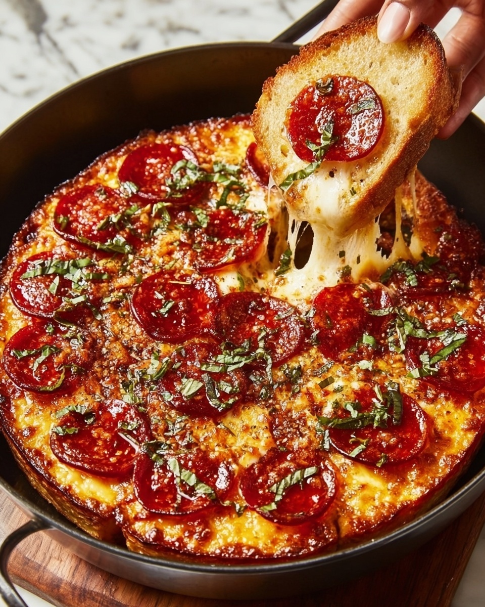 Spread the dip evenly in the prepared dish so it bakes uniformly. This ensures every scoop has that magical balance of melted cheese and pepperoni.