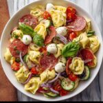 A refreshing, flavorful Italian Tortellini Pasta Salad featuring cheese tortellini, fresh vegetables, savory salami, and a zesty Italian dressing. This chilled pasta salad is perfect as a light meal or a vibrant side dish for any occasion.