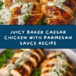 This Juicy Baked Caesar Chicken with Parmesan Sauce is a creamy, flavorful dish featuring tender chicken breasts baked to perfection and topped with a rich Caesar dressing and Parmesan cheese sauce. Quick to prepare and perfect for a weeknight dinner, this recipe produces juicy, golden chicken with a deliciously cheesy crust.