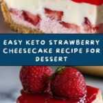 This Keto Strawberry Cheesecake is a delicious low-carb dessert that features a buttery almond flour crust, a creamy strawberry-infused cheesecake filling, and a fresh strawberry topping. Perfect for keto and low-carb diets, this no-bake cheesecake sets in the refrigerator and offers a rich and refreshing treat with natural sweetness from erythritol and fresh strawberries.