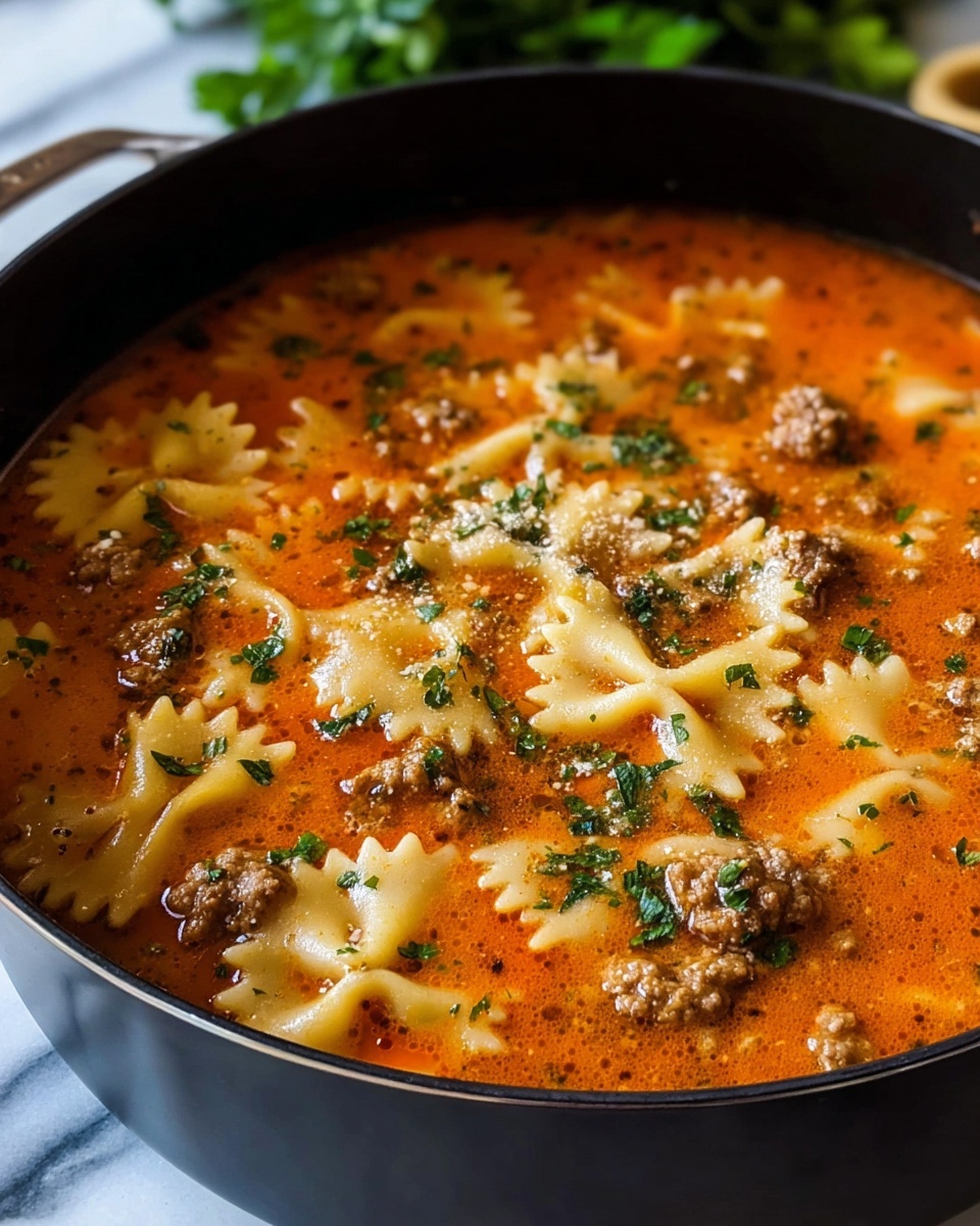 There is something incredibly comforting about a warm bowl of hearty soup, and this Lasagna Soup Recipe brings all the cozy, rich flavors of classic lasagna into a quick and easy one-pot meal. Imagine tender bowtie pasta swimming in a savory tomato and beef broth, layered with gooey cheeses and fresh herbs that brighten every bite. It’s the perfect shortcut to that baked favorite without sacrificing any of the soul-warming goodness. Whether you’re serving up a crowd or craving a satisfying weeknight dinner, this dish checks all the boxes for flavor, texture, and ease.