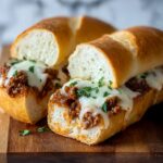 Lasagna Stuffed Garlic Bread is a delicious fusion recipe combining the hearty flavors of classic lasagna with the crispy, garlicky goodness of garlic bread. Layers of tender lasagna noodles, savory sausage meat sauce, creamy béchamel, and melted cheddar and mozzarella cheeses are baked inside garlic bread loaves for a comforting and visually impressive dish perfect for family dinners or casual gatherings.