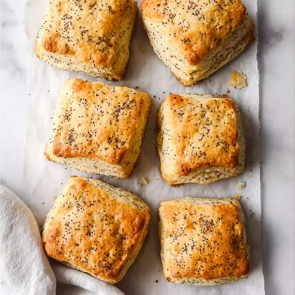 These Lemon Poppy Seed Biscuits are tender, flaky, and bursting with bright citrus flavor from fresh lemon zest and crunchy poppy seeds. Made with cold butter and buttermilk, they have a light texture with a golden, buttery crust. Perfect for breakfast or brunch, they can be enjoyed plain or with a smear of butter or jam.