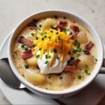 This Loaded Baked Potato Soup is a creamy, comforting dish packed with hearty potatoes, sharp cheddar cheese, crispy bacon, and a touch of sour cream. Perfect for chilly days, this rich soup combines classic baked potato flavors into a warm, satisfying bowl.