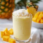 This Mango Colada recipe is a refreshing tropical drink that combines the sweetness of frozen mango and pineapple with creamy coconut milk and coconut cream, perfectly balanced with white rum and pineapple juice. Easy to prepare and bursting with vibrant flavors, it’s an ideal beverage for a sunny day or a tropical-themed party.