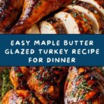 Enhance your maple-butter-glazed turkey with fresh herbs like thyme or rosemary sprigs placed elegantly around the platter. Thin orange or lemon slices can add a subtle citrus pop and brighten the presentation. Cranberries or pomegranate seeds scattered nearby bring festive color and a tart contrast to the sweet glaze.