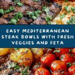 These Mediterranean Steak Bowls combine tender grilled flank or skirt steak with fresh vegetables, hearty brown rice or quinoa, creamy feta cheese, and a bright lemon dressing for a delicious, balanced, and satisfying meal that captures the flavors of the Mediterranean.