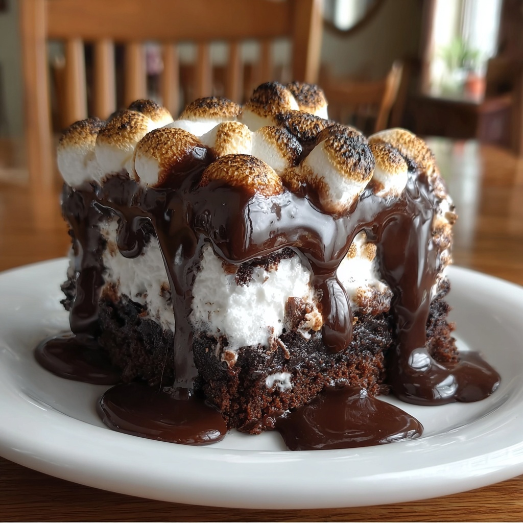 This rich and fudgy Mississippi Mud Cake is a decadent chocolate dessert featuring a moist cocoa batter topped with gooey mini marshmallows and melted chocolate chips. Perfect for chocolate lovers, this easy-to-make cake combines deep chocolate flavor with a chewy, marshmallow topping for an irresistible treat.