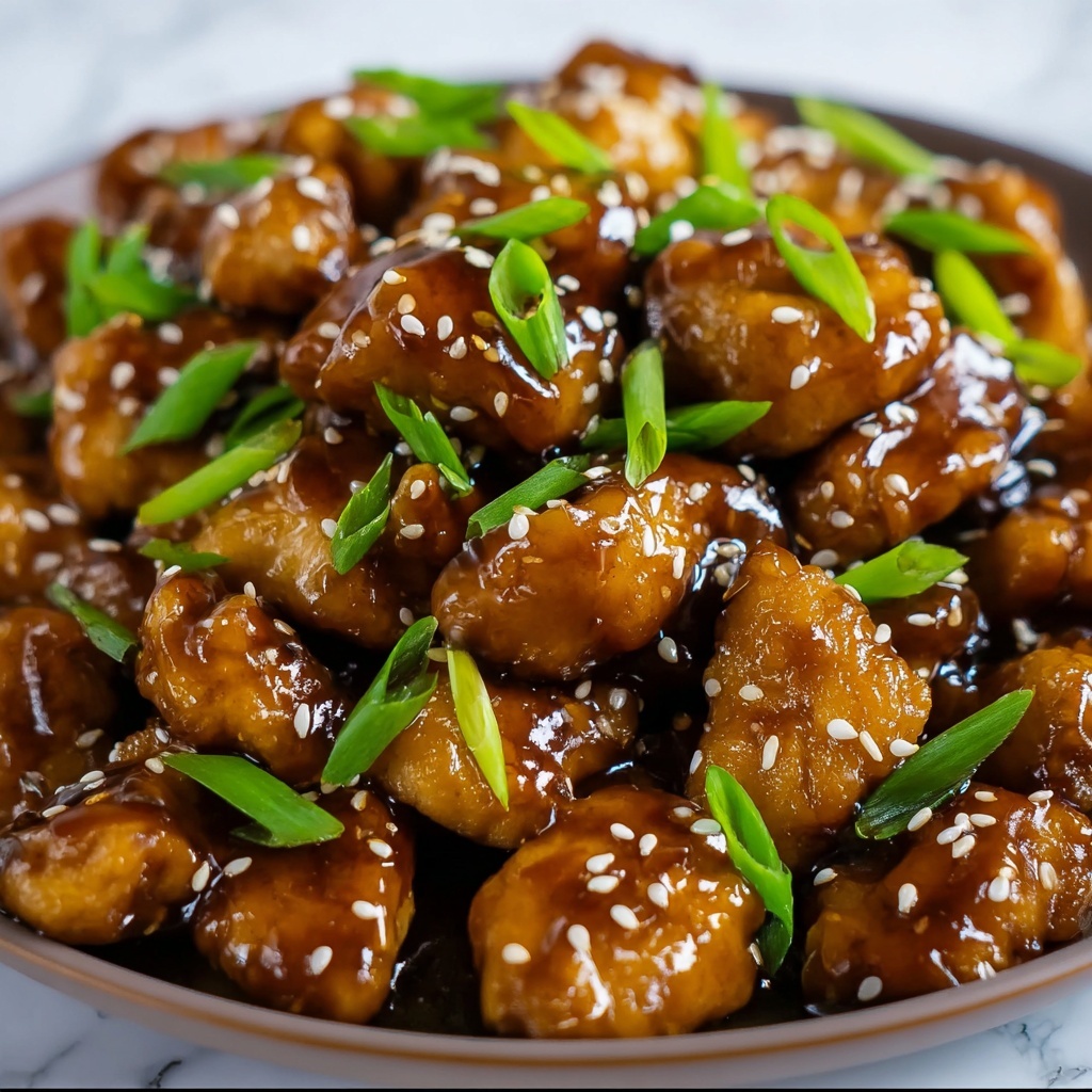 This Mongolian Chicken recipe features tender bite-sized chicken pieces coated in a crispy cornstarch crust, then tossed in a flavorful, sweet-savory soy-based sauce with garlic, ginger, and a hint of heat from red pepper flakes. It’s a quick and easy stovetop dish that brings the taste of your favorite takeout right to your kitchen, perfect served over steamed white rice and garnished with green onions and sesame seeds.