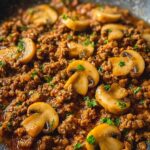 A savory and easy-to-make Mushroom Ground Beef skillet recipe that combines tender ground beef with finely chopped mushrooms, onions, and garlic, enhanced with Worcestershire and soy sauces. Perfect for a quick weeknight dinner, served over rice, mashed potatoes, noodles, or in lettuce wraps.