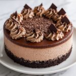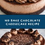 A rich and creamy no bake chocolate cheesecake made with a chocolate cookie crust and a smooth chocolate cream cheese filling. This easy dessert requires no oven time and is perfect for chill-and-serve occasions, garnished with whipped cream and chocolate shavings.