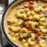 This hearty and comforting One Pot Macaroni Cheeseburger Soup combines the flavors of a classic cheeseburger with creamy, cheesy soup and tender macaroni pasta. Packed with ground beef, fresh vegetables, and melted cheddar cheese, this easy-to-make soup is perfect for cozy dinners and feeds a crowd with minimal cleanup.
