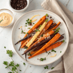 For a fun twist, serve your Parmesan Roasted Carrot Fries Recipe stacked in a small basket lined with parchment paper for a casual, diner-style feel. You can also place them on a platter alongside dipping sauces like garlic aioli, ranch, or Greek yogurt dip to invite sharing and dipping at the table.