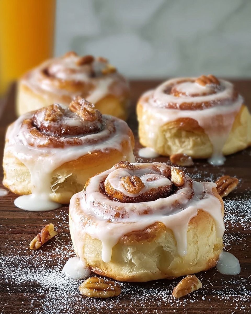 For an extra-special touch, sprinkle toasted chopped pecans or walnuts on top of the glazed rolls. A little fresh peach slice or a pinch of cinnamon dust can also brighten up the presentation while adding a subtle texture contrast.