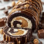 This Peanut Butter Cup Cake Roll combines a light, fluffy chocolate sponge cake with a creamy peanut butter filling, finished with a drizzle of melted chocolate. Perfect for chocolate and peanut butter lovers, this elegant dessert is rolled with a sweet, rich filling and chilled to set before serving.
