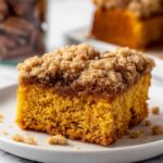 This Pecan Pumpkin Coffee Cake combines the warm flavors of pumpkin and spices with a crunchy pecan crumb topping, making it the perfect treat for fall mornings or cozy gatherings. Moist and tender, this coffee cake is elevated by its rich pumpkin puree and a delightful blend of cinnamon, nutmeg, cloves, and ginger, topped with a buttery pecan streusel.