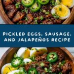 This Pickled Eggs, Sausage, and JalapeƱos Recipe is a fabulous way to add some vibrant, layered flavor to your snack lineup. Whether serving them at a party, packing them for a picnic, or simply enjoying a flavorful bite at home, this recipe is sure to become a beloved favorite. Give it a tryāthe perfect combination of tang, smoke, and spice awaits!