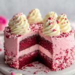 Serve your Pink Velvet Dream Cake Recipe alongside a scoop of vanilla bean ice cream or a dollop of lightly whipped cream. Fresh fruit salad or a simple berry coulis also work beautifully, balancing sweetness with light fruitiness.