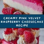 This Pink Velvet Raspberry Cheesecake is a decadent and visually stunning dessert perfect for special occasions. Featuring a buttery graham cracker crust, a creamy raspberry-infused cream cheese filling tinted with pink food coloring, and topped with fluffy whipped cream and fresh raspberries, this cheesecake is sure to impress your guests with its rich taste and elegant presentation.