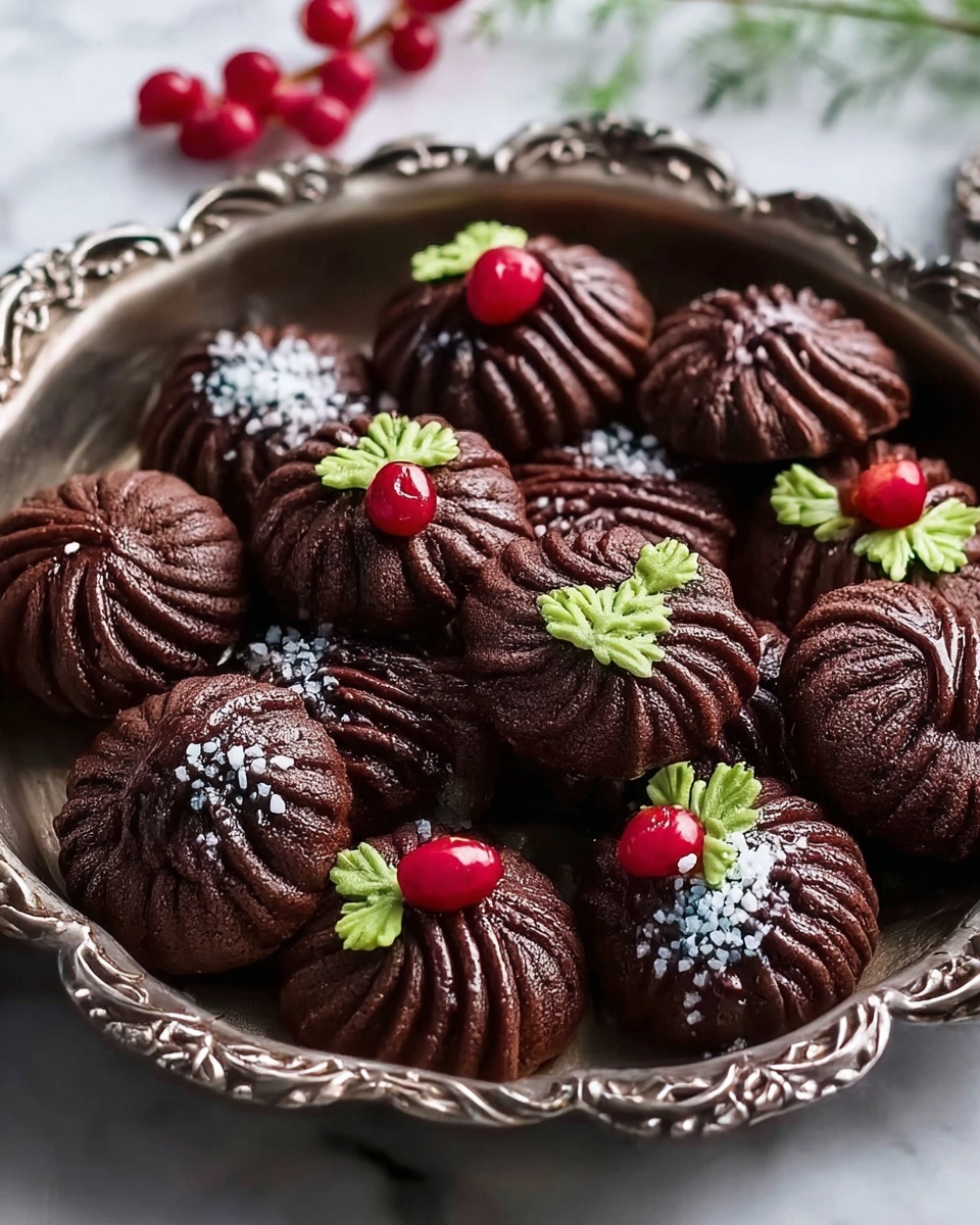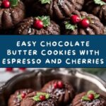 These Piped Chocolate Butter Cookies are rich, buttery, and melt-in-your-mouth delicious. Featuring a tender cocoa-infused dough enhanced with a hint of espresso, these cookies are piped into elegant swirls and baked to perfection. Finished with optional semi-sweet chocolate pieces, maraschino cherries, and sprinkles, they’re perfect for special occasions or a delightful treat with afternoon tea.