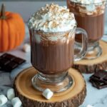 Serve your Pumpkin Hot Chocolate Recipe in clear glass mugs to show off its warm, inviting orange-brown color. You might add a cinnamon stick as both garnish and stirrer, or sprinkle some crushed graham crackers on top of the whipped cream for a fun, subtle crunch that’s reminiscent of pumpkin pie.