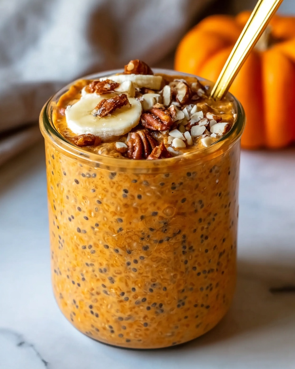Serve your oats layered in a clear glass jar or pretty bowl to showcase those beautiful autumn colors. For a fun twist, try layering granola or toasted coconut flakes on top just before serving to add crunch and surprise.
