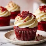 Sprinkle a little extra flair on your cupcakes with garnishes like a light dusting of cocoa powder, colored sugar crystals, or even tiny red sprinkles that echo the cupcake’s iconic color. Fresh berries or edible flowers can add a beautiful and natural touch, setting your cupcakes apart with their charm.