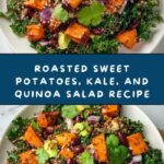 - Assemble the Salad: Add the cooked quinoa to the bowl with the massaged kale. When the roasted sweet potatoes have cooled slightly, add them to the bowl as well. Drizzle the dressing over the salad and toss gently to combine. Add the optional dried cranberries or pomegranate seeds, toasted pecans or pumpkin seeds, and crumbled feta or goat cheese. Taste and adjust seasoning if necessary before serving.