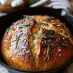 This Rustic No-Knead Rosemary Garlic Bread offers a simple yet flavorful artisan-style loaf that requires minimal hands-on effort. Infused with fresh rosemary and garlic, this bread boasts a crispy golden crust and a soft, airy interior. Perfect for serving warm with butter, soups, or as a sandwich base, this recipe leverages a long fermentation to develop deep flavor without kneading.