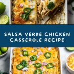 This Salsa Verde Chicken Casserole is a flavorful, creamy, and cheesy dish that combines tender shredded chicken with tangy salsa verde, Mexican spices, and layers of corn tortillas. Baked to perfection with Monterey Jack cheese and topped with fresh cilantro, cotija cheese, jalapeños, and red onion, it’s a comforting and delicious meal perfect for weeknight dinners or casual gatherings.