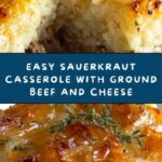 A hearty and comforting Sauerkraut Casserole featuring savory ground beef, tangy sauerkraut, and melted sharp cheddar cheese, baked to golden perfection. This delicious casserole offers a creamy texture with a smoky and savory flavor profile, perfect for a satisfying dinner.