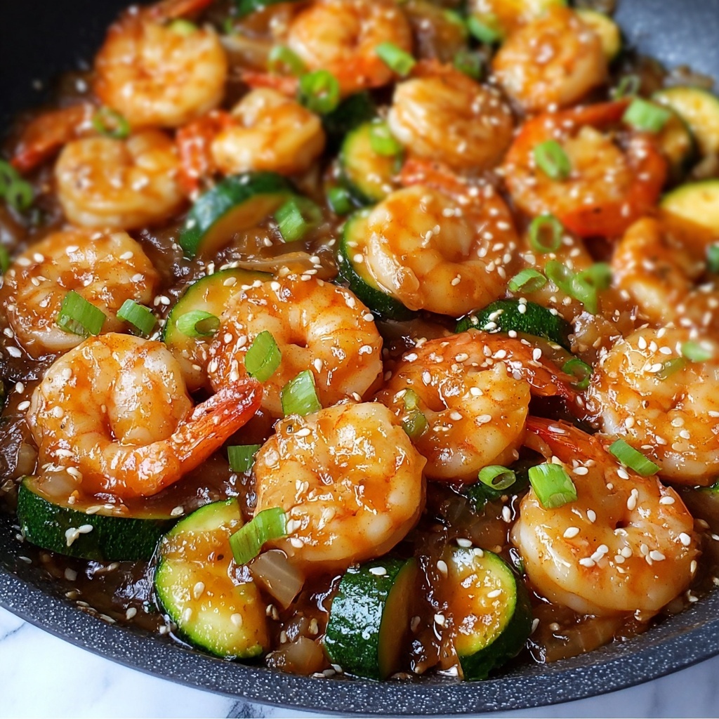 A quick and flavorful shrimp and zucchini stir fry featuring a homemade teriyaki sauce. This dish is perfect for a healthy weeknight dinner, combining tender shrimp and crisp zucchini with a sweet and savory glaze made from soy sauce, honey, ginger, and garlic.