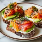 A delightful and healthy Smoked Salmon & Avocado Toast recipe perfect for a quick breakfast or light lunch. Creamy mashed avocado combined with savory smoked salmon, fresh vegetables, and optional cream cheese create a flavorful, nutrient-packed open-faced sandwich served on toasted whole grain or sourdough bread.