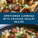 A hearty and flavorful Smothered Cabbage with Sausage Skillet recipe featuring smoked sausage, tender cabbage, and aromatic vegetables simmered to perfection in a single pan. This easy one-skillet meal is perfect for a comforting weeknight dinner packed with smoky and savory flavors.