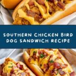 The Southern Chicken Bird Dog Sandwich is a delicious and hearty sandwich featuring crispy breaded chicken tenders, smoky bacon, and melted sharp cheddar cheese served in a soft hot dog bun. This quick and satisfying meal combines classic Southern flavors with an easy assembly, perfect for a casual lunch or dinner.