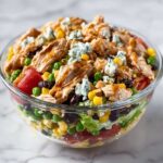 This vibrant Southwest Chicken Salad is a perfect blend of seasoned grilled chicken, fresh vegetables, and a creamy zesty dressing. It combines the smoky flavors of chili, cumin, and paprika with crisp romaine, black beans, corn, and avocado, creating a satisfying and healthy meal ideal for lunch or dinner.