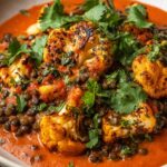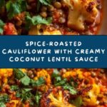 This vibrant Spice-Roasted Cauliflower in Coconut Tomato Sauce with Lentils is a flavorful, hearty dish perfect for a satisfying vegetarian meal. Roasted cauliflower florets are infused with warming spices, then combined with a rich, creamy sauce made from coconut milk, tomatoes, and tender red lentils. Garnished with fresh cilantro and nigella seeds, it’s an aromatic and comforting recipe ideal for dinner.