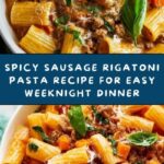 This hearty Spicy Sausage Rigatoni Recipe pairs wonderfully with a crisp green salad dressed in a light vinaigrette or garlic bread that’s toasted just right to soak up every last bit of sauce.