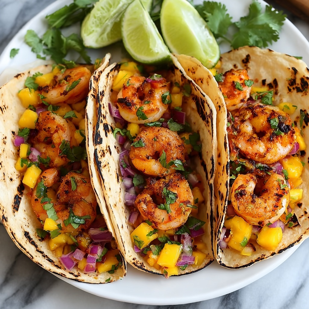 Gently reheat shrimp in a skillet over medium heat to avoid overcooking, and warm tortillas in a dry skillet or microwave. Keep the mango salsa chilled and add it fresh when assembling to maintain its bright flavor and texture.