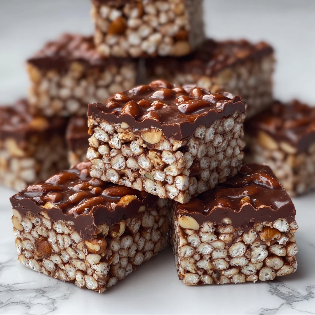 Deliciously chewy and chocolatey Star Crunch Rice Krispie Treats made with Kraft caramel bits, raisin puree, cocoa powder, oats, and a mix of semi-sweet and milk chocolate chips. These treats combine marshmallows and Rice Krispies cereal for a nostalgic, irresistible snack perfect for any occasion.
