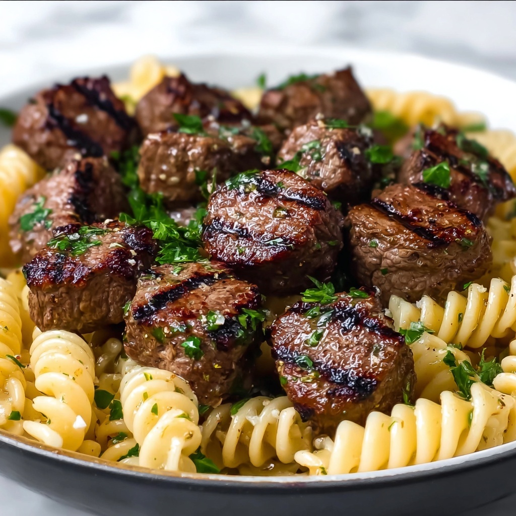 For an elegant touch, plate the pasta with steak bites in a shallow bowl, drizzle a little extra sauce over for gloss, and top with a sprig of fresh herbs. For casual dinners, serve family style with a big bowl in the center of the table, inviting everyone to dig in and share the warmth of this comforting dish.