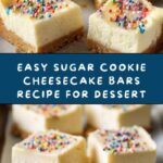 Delightful Sugar Cookie Cheesecake Bars combining a buttery sugar cookie crust with a smooth, creamy cheesecake topping. Perfectly baked to a golden finish, these bars are chilled for a luscious texture and easy slicing, making a delicious treat for any occasion.