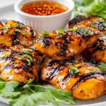 Sprinkle chopped cilantro, green onions, and a handful of sesame seeds on top for a fresh, crunchy finish. Your Sweet Chili Glazed Grilled Chicken Recipe is now ready to wow your taste buds.