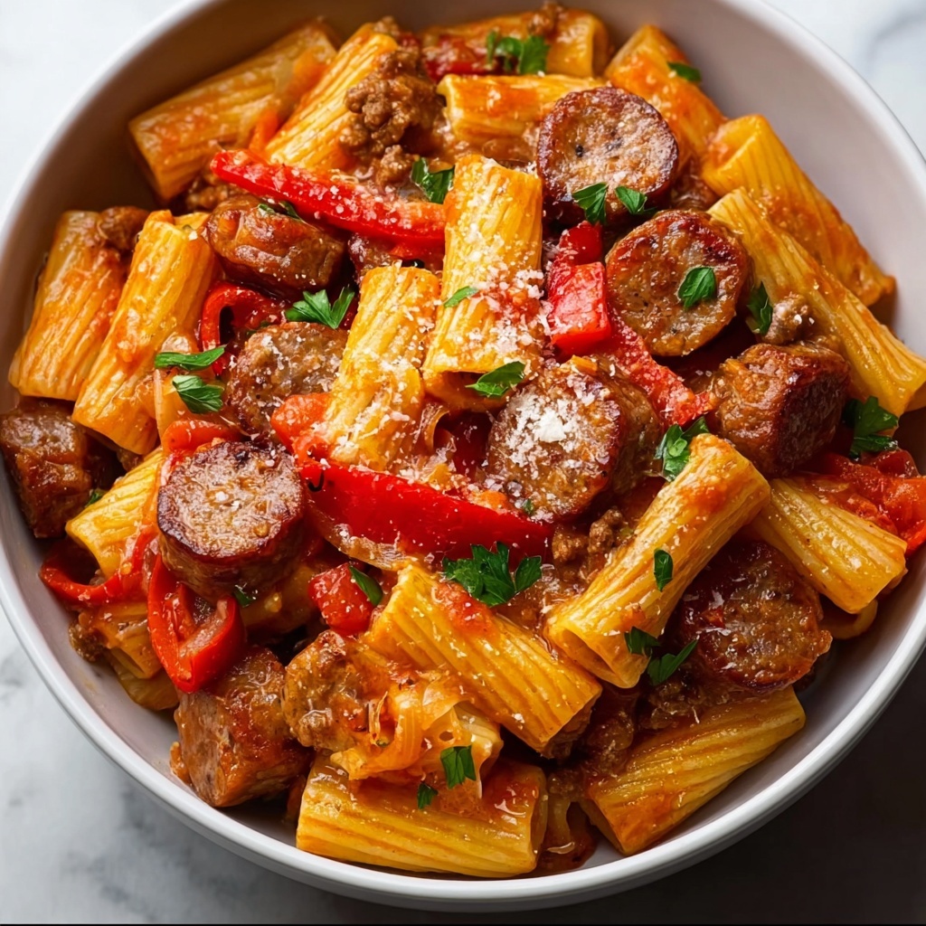 A flavorful and hearty Sweet Pepper and Sausage Pasta combining savory Italian sausage with sweet bell peppers and aromatic herbs, all tossed with al dente pasta for a quick and satisfying meal ready in just 30 minutes.