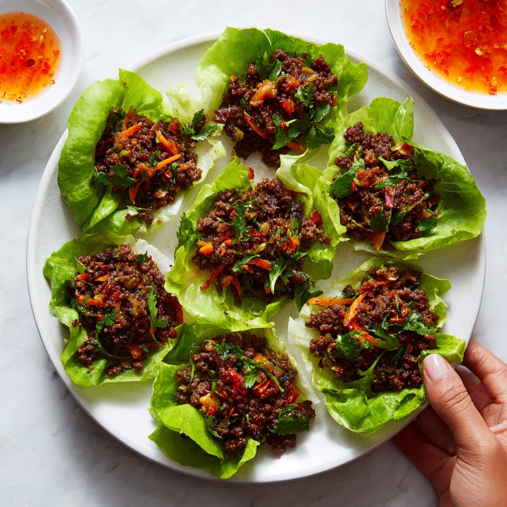 For a fun twist, serve the beef mixture in a large platter and let guests build their own wraps, turning dinner into an interactive event. Or, create mini versions using smaller lettuce leaves for a vibrant appetizer platter at your next gathering.
