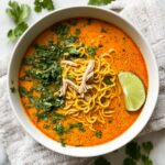 The final touch is stirring in fresh lime juice and chopped cilantro. This elevates the dish with bright citrus notes and fragrant herbs, balancing the creamy richness and spices. Your Thai Red Curry Soup Recipe is now ready to serve!
