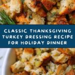 This classic Thanksgiving Turkey Dressing is a savory and comforting side dish made from toasted bread cubes, sautéed vegetables, aromatic herbs, and a rich broth-egg mixture. Baked until golden and crisp on top, this recipe delivers moist and flavorful dressing that complements any holiday meal perfectly.