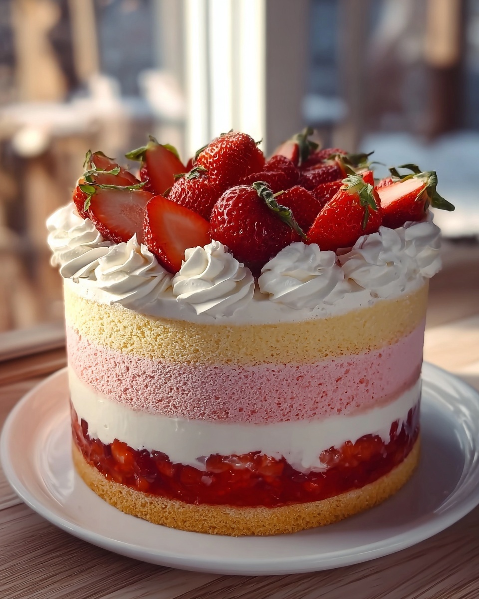 The beauty of this recipe lies not only in its appearance but also in the simplicity and quality of its ingredients. Each component plays a vital role in building the cake’s moist texture, balanced sweetness, and those irresistible strawberry accents that make this cake shine.