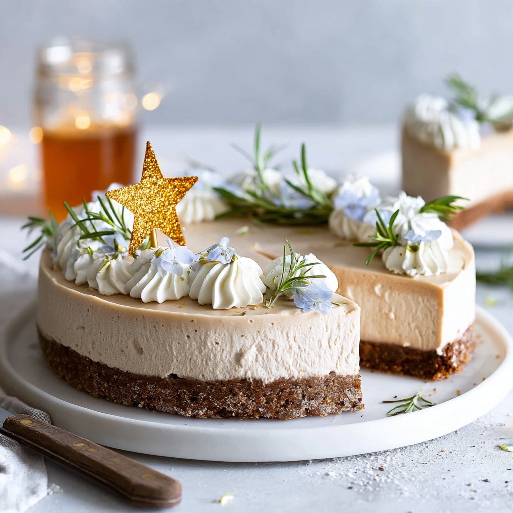 This cheesecake pairs beautifully with some light, fresh accompaniments. Think a bowl of spiced berry compote or a small cup of vegan eggnog for sips alongside each slice. These sides add refreshing contrast and help balance the dessert’s richness perfectly without overwhelming the palate.