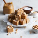 This simple and delicious Vegan Fudge recipe requires only three main ingredients and a touch of sea salt. Made with smooth peanut butter, sweetened condensed coconut milk, and vegan white chocolate, this creamy fudge is effortlessly prepared using a gentle bain-marie melting technique, then chilled to set into rich, indulgent pieces. Optional roasted peanuts add a delightful crunch to each bite.